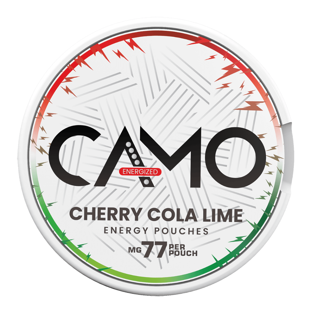 Experience the rich, Cherry Cola Lime taste with every CAMO Cherry Cola Lime Energy Pouch. Each pouch provides an instant boost of 77 mg of caffeine, equivalent to one energy drink, giving you the kick you need to stay alert and focused. Enjoy the convenience of a slim pouch packed with flavour that delivers the perfect balance between coffee indulgence and an energizing experience.
